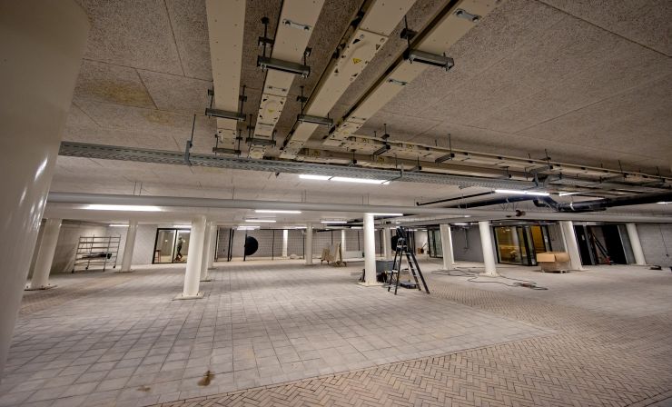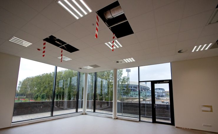 Binnen lijkt het wel alsof de leerlingen over een maand al kunnen beginnen. De verf is net droog, de vloer ligt, het hout is mooi afgewerkt en de verlichting doet het. Igor: ‘De lesruimtes zijn licht met hoge ramen. Ook de gangen kunnen als leerruimtes worden gebruikt. MOVE heeft ruimtes voor praktijkonderwijs op straatniveau met een eigen toegang. Bezoekers kunnen hier dan bijvoorbeeld binnenlopen voor een wellness- of beautybehandeling. En dat ook nog eens met uitzicht op De Kuip! Je kan wel merken dat je hier op de Sportcampus zit. De nieuwe straat waar de school aan zit, gaat dan ook de Marathonstraat heten.’