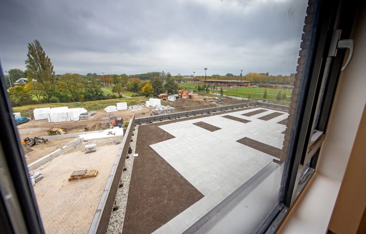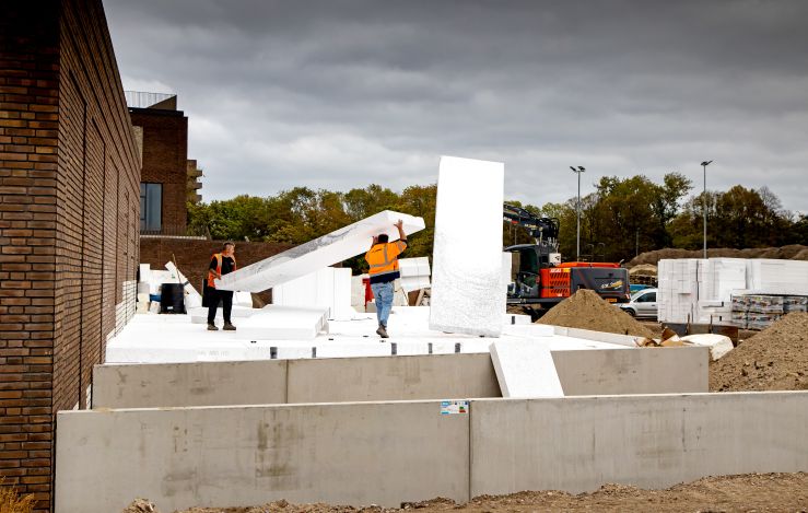 Het terrassenlandschap krijgt buitenruimtes en pleinen op verschillende hoogtes. Igor: ‘Daarvoor gebruiken we EPS, dat is ophoogmateriaal van piepschuim. Het voordeel daarvan is dat het licht is, het weegt veel minder dan zand. Het is dus minder zwaar, waardoor de slappe ondergrond minder snel verzakt. En het is ook nog eens stabiel.’