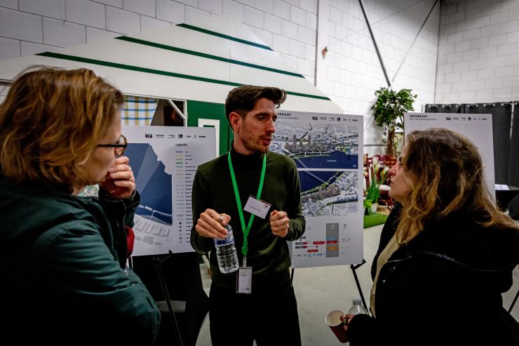 ‘Veel woningen, een opgetild landschap, een drijvend zwembad op de Maas en een entreeplein over het spoor, dit plan mag je wel uniek noemen.’ Op 13 januari was de inloopbijeenkomst over het stedenbouwkundig plan en het omgevingsplan voor Waterkant, een van de deelgebieden in Rotterdams Tij. Bewoners, ondernemers en andere geïnteresseerden konden het plan bekijken en in gesprek gaan met de teams van Stadionpark en Rotterdams Tij.