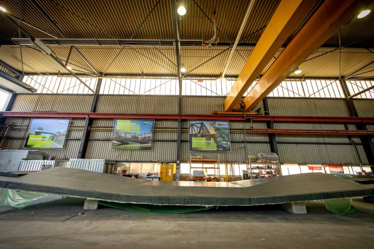Het is grijsgroen, 17 meter lang, 5 meter breed en gemaakt van ruim 122.000 gerecyclede petflessen, rara wat is dat? Antwoord: de nieuwe fiets- en voetgangersbrug die op de Sportcampus komt. ‘Voor een groot deel met de hand gemaakt en hij gaat wel honderd jaar mee. Hartstikke duurzaam en circulair’, vertelt directeur Matthijs Raak van FiberCore Europe trots.
